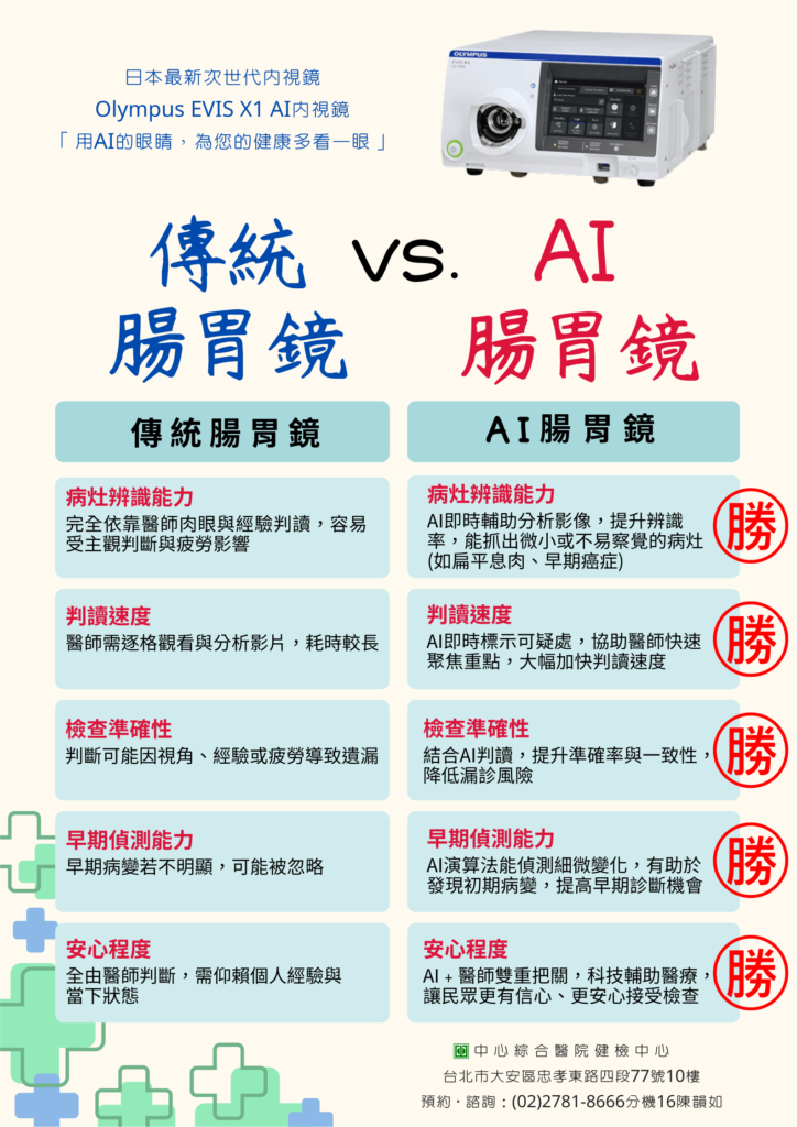 AI腸胃鏡則是結合人工智慧輔助,能即時辨識影像中可能的異常區域,提醒醫師進一步確認,大幅降低漏診風險。就像多一雙精準的「第二雙眼睛」,幫您把關健康。